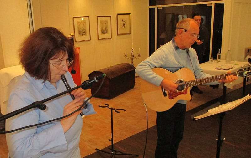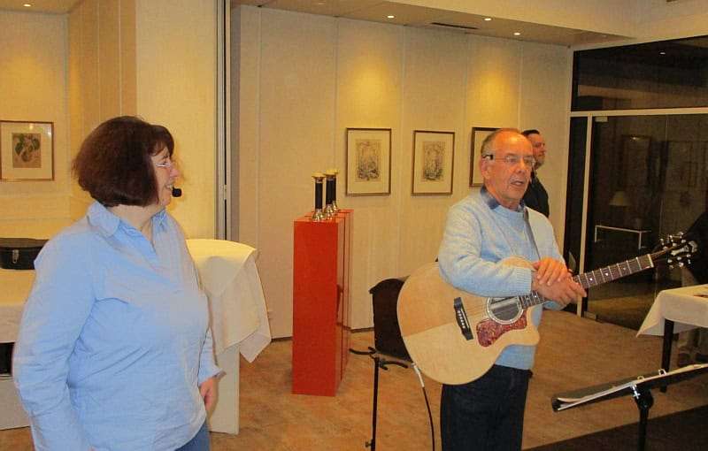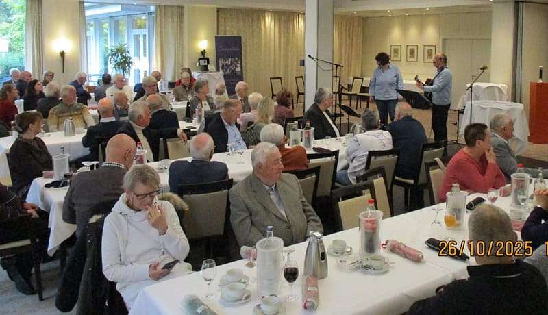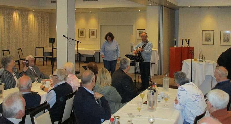 In der „Waldmutter“ erwartet uns heute eine neue Tischanordnung, die uns sehr entgegenkommt – wir können in der Mitte des Raumes spielen und sind für alle Jubilarinnen und Jubilare gut zu sehen. Wir haben insgesamt vier Intermezzi zur Begrüßung, zwischen den Ehrungen und dann vor der Eröffnung des Buffets. Spätestens als eine Kollegin nach unserer „Aufstockerin“ spontan erzählt, wie die aktuelle Situation vieler Beschäftigter im Einzelhandel aussieht, gewinnen unsere musikalischen Beiträge ein eigenes Gewicht. Es wird ein berührender Vormittag mit viel Lob, Dank und netten Gesprächen.