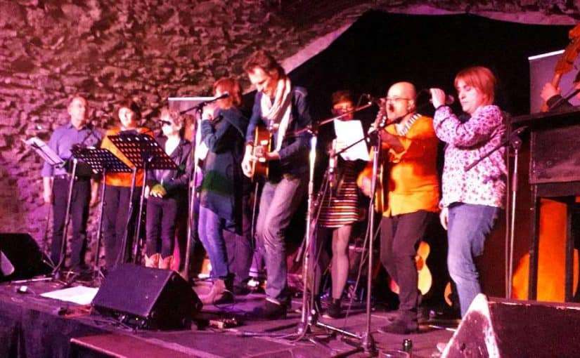 Wir sind eine von sechs Formationen und sind mit drei eigenen Vorträgen sowie vier gemeinsam mit allen gesungenen Stücken eingeplant. Als eine andere Künstlerin spontan einen Backgroundchor für „Wimoweh“ sucht, machen wir natürlich gern mit. Ein spannendes, aber auch forderndes Konzert-Experiment ohne vorherige Proben, das aber sehr gut ankommt. Dank an Gudrun für die Fotos und gute Besserung an Michael – toll, dass Du da warst!