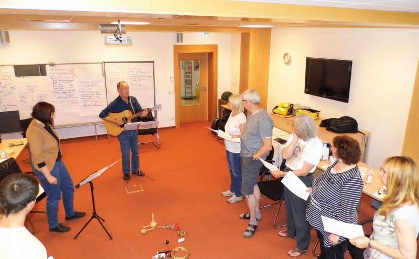 Unser Eindruck aus diesem Seminar: Die Teilnehmerinnen und Teilnehmer dieses Seminares können trotz der unterschiedlichen Ausgangspositionen und vielleicht auch unterschiedlicher Einstellungen gegenüber dem Liedgut der Arbeiterbewegung allerhand Neues erfahren und sich auf ganz unterschiedliche Weise einbringen. Im Mittelpunkt steht natürlich das gemeinsame Erlernen und Singen der Lieder. Aber auch das Verständnis für den historischen Hintergrund, die Einordnung in die jeweilige Zeit und die Interpretation kommen nicht zu kurz. Und ganz nebenbei können sich alle individuell einbringen, wenn es um das kreative Arrangement geht – durch die Nutzung der bereitsgestellten Percussion beispielsweise, die Nutzung eventuell mitgebrachter Instrumente, die Übernahme einer Solopassage in einem Lied oder den Vortrag der Anmoderation. Spaß ist garantiert.