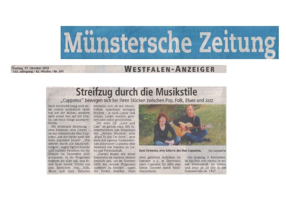 Andrea Kutzendörfer (Münstersche Zeitung, 17. Oktober 2003); hier geht es zum Originalartikel