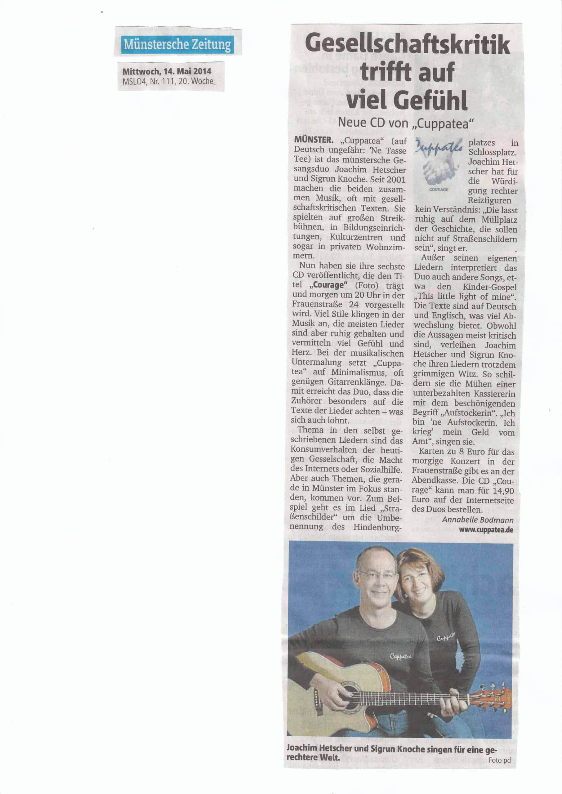 Text: Annabelle Bodmann, Münstersche Zeitung, 14. Mai 2014; hier geht es zum Originalartikel.