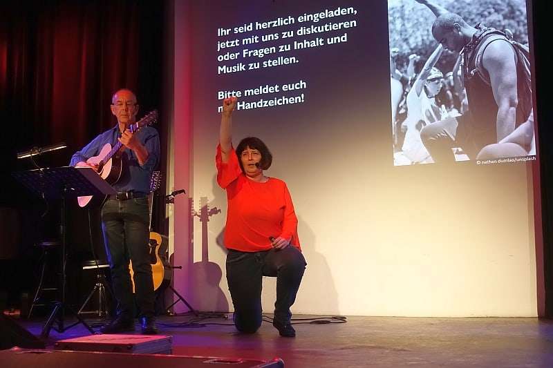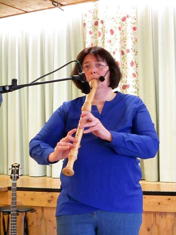 Nach einem kurzen Ausflug in die Welt der Gitarre ging sie in den A-Cappella-Bereich, der sie auf den Geschmack brachte, sich mit anderen, aber auch allein als Sängerin auf die Bühne zu stellen. Sie gründete das A-Cappella-Ensemble „Salto Vocale„, in dem sie seit mehr als 30 Jahren mitwirkt. Und sie war auch in der Band K.O.MBO dabei, wo sie auf Joachim traf.